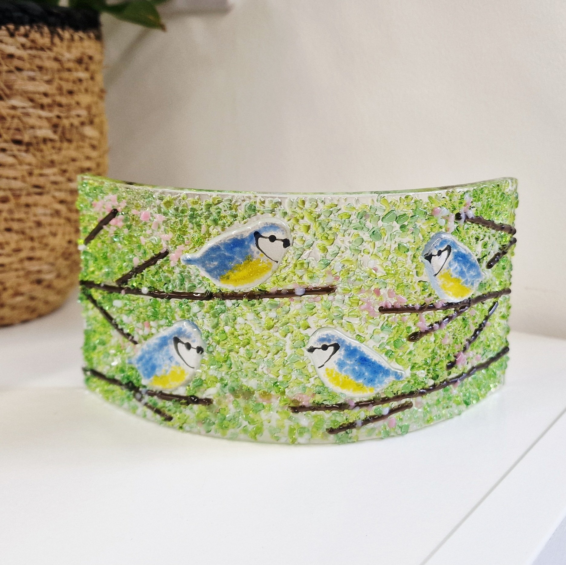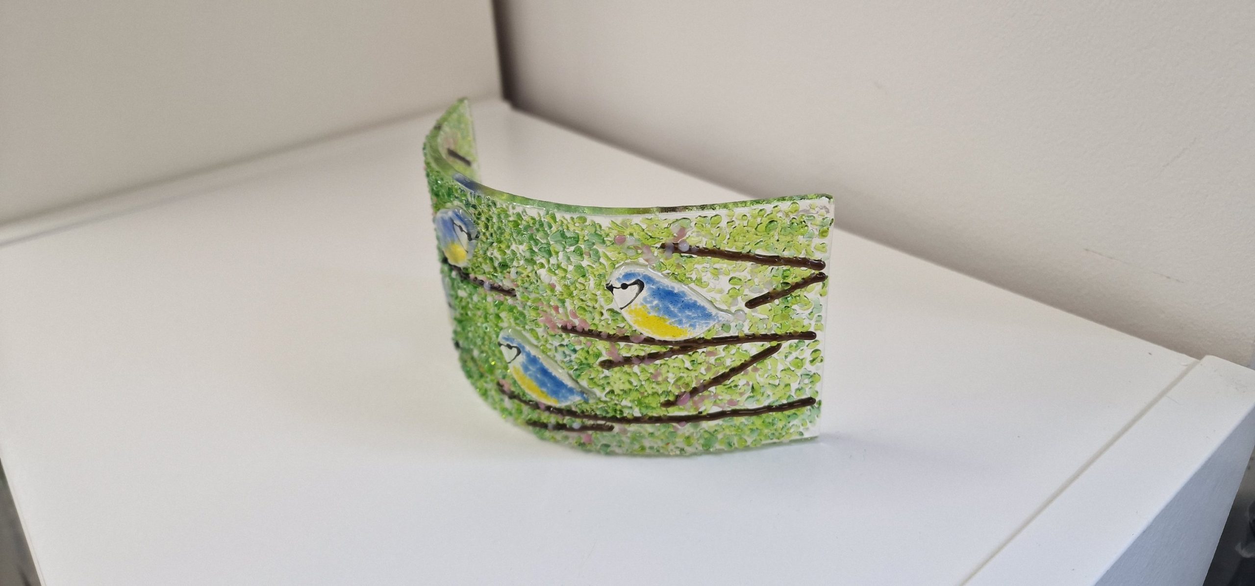 These cute little bluetit arcs would look lovely on a shelf or in a window. I’ve added some blossom to the trees, too.